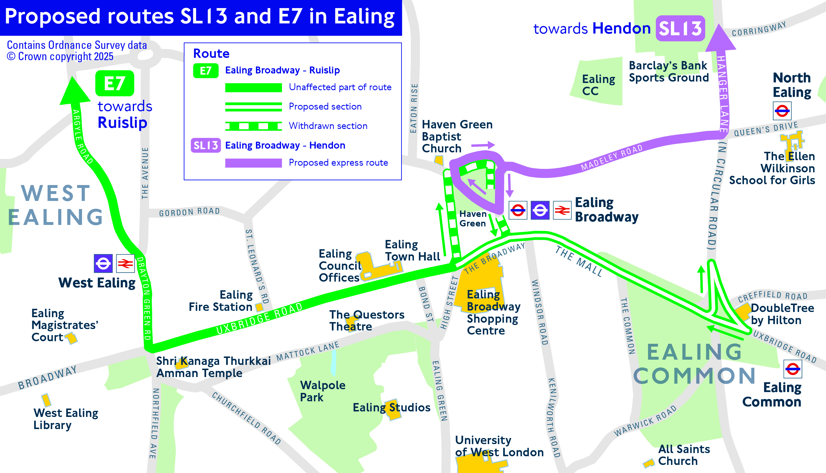 There would be a journey adjustment for passengers currently using route E7 to access Haven Green in Ealing Broadway.